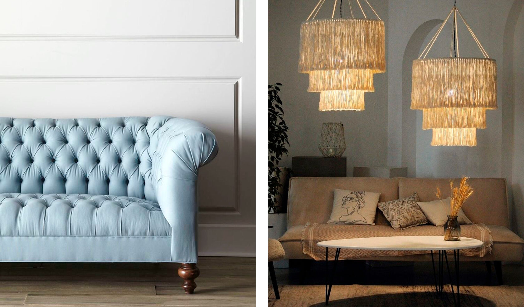 Уют — это то, чего мы ждём от своего дома. Ту благостность, когда можно просто растянуться на диване или утонуть в кресле, раскидав ноги в тапках по мягкому ковру и замотавшись в плед крупной вязки. Мягкость в интерьере — это актуальный тренд, перекликающийся с естественной потребностью скрыться от безумия мира. Уюта, многоуровневой глубины и чувства гармонии добавляют бахрома на абажуре, текстурная обивка мебели и пуговицы-утяжки, ковры с высоким ворсом (да, спокойно воспринимаем неожиданное возвращение не самых легкоочищаемых покрытий), тяжёлые бархатные шторы, глубокие нейтральные оттенки стен, марокканские светильники, аромасвечи, подушки и другие п̶ы̶л̶е̶с̶б̶о̶р̶н̶и̶к̶и̶ детали.